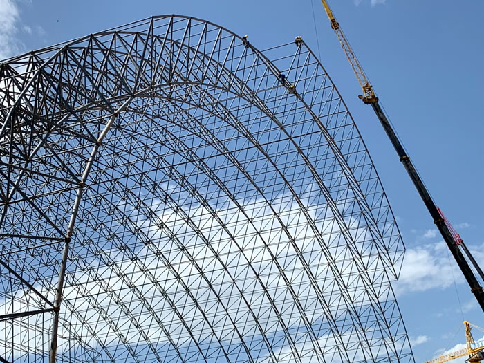 (2)网架加工前应对现场尺寸进行复测,确认无误后方可进行加工、安装;网架制作、运输、安装应遵守《空间网格结构技术规程》JGJ7-2010、《钢网架东阳螺栓球节点》JG/T 10-2009、《钢网架东阳螺栓球节点用高强度螺栓》 GB/T 16939-2016、《东阳钢结构东阳工程东阳施工规范》 GB50755-2012、《东阳钢结构东阳工程施工质量验收标准》 GB50205-2020。